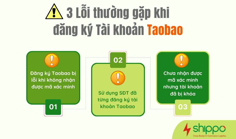 Tuy nhiên việc tạo Tài khoản Taobao đối với các bạn không biết Tiếng Trung là khá khó khăn và rắc rối. Việc đăng ký tài khoản Taobao hiện nay thường xuyên xảy ra lỗi. Sau đây là 3 lỗi thường gặp khi đăng ký tài khoản Taobao, Shippo hi vọng sẽ giúp các bạn tạo được tài khoản và tìm được nguồn hàng ưng ý trên Taobao nhé!