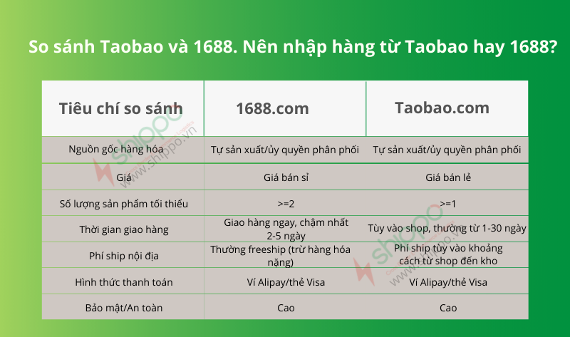Vậy câu trả lời chính xác nhất cho câu hỏi "Nên nhập hàng từ taobao hay 1688?" là "tuỳ thuộc vào nhu cầu người mua"