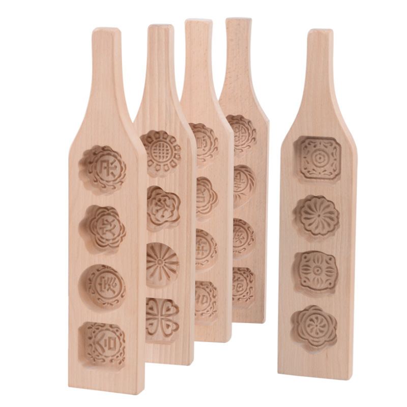 Đây là loại khuôn làm bánh được đục bằng gỗ, chất liệu bằng gỗ và thân thiện với môi trường, có nhiều hình dạng hoa văn và thường là kích thước nhỏ.