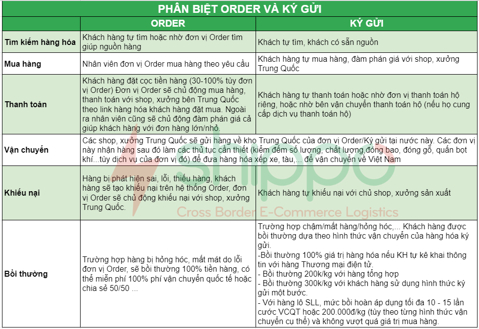 Nếu như là hàng order khâu mua bán, thanh toán với nhà cung ứng bên Trung Quốc do đơn vị order/vận chuyển phụ trách hoàn toàn, thì đối với hàng ký gửi khách hàng sẽ phải tự mua bán với shop Trung, tự tìm cách thanh toán hoặc áp dụng hình thức thanh toán hộ (hoặc liên hệ với đơn vị vận chuyển thanh toán giúp). Tại đây, phía vận chuyển chỉ có nhiệm vụ nhận hàng của shop bên Trung và vận chuyển hàng tới tay khách ở Việt Nam.